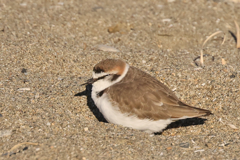 今日は運がよかったというか、ついてました。 ミユビシギを見ていたらコミミガ右から飛んできた。車の横を通り過ぎ 助手席に置いていたカメラを持ったが間に合わず、残念と思ったその時でした。 流木の上にとまってくれました。巡光だし、距離も背景もすべて良しでした。