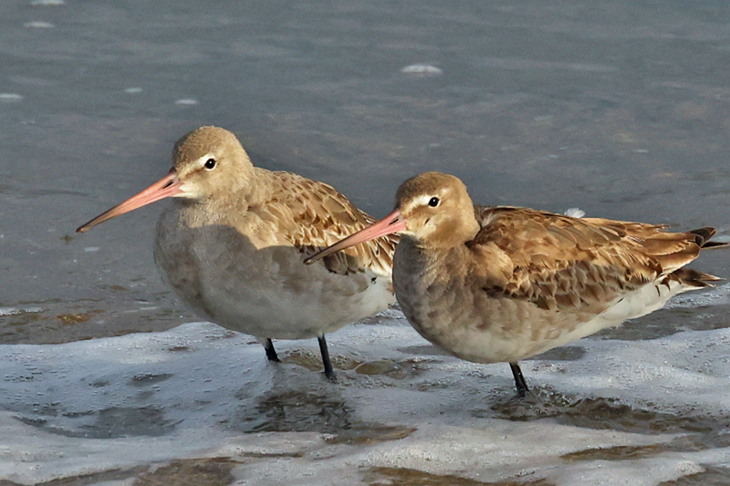 ヨーロッパトウネン2個体. トウネンの越冬はこれまで一度もありませんがヨロネンは稀に当地でも越冬してくれます。この冬は期待できるかな
