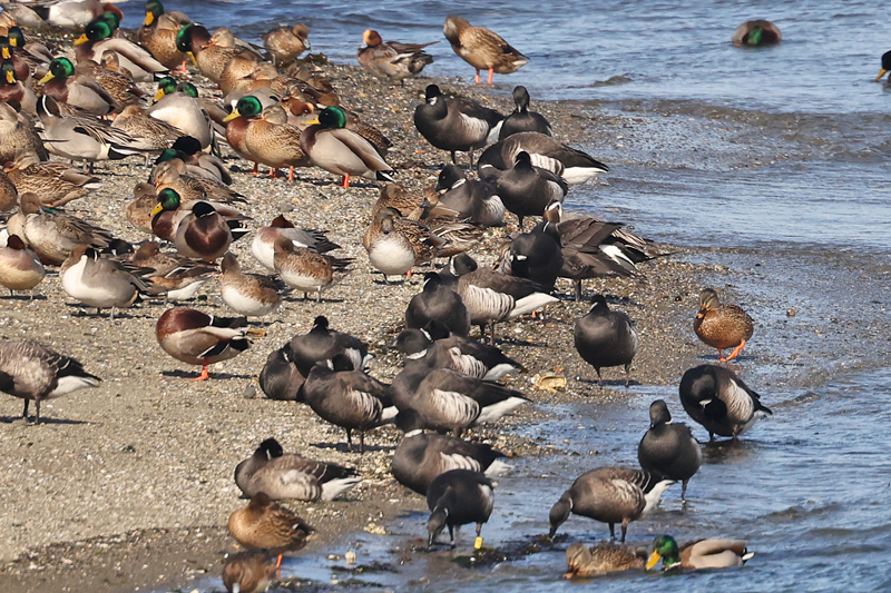 コクガンが居る所はカモたちで込み合ってました。 バーダーは誰もいない。